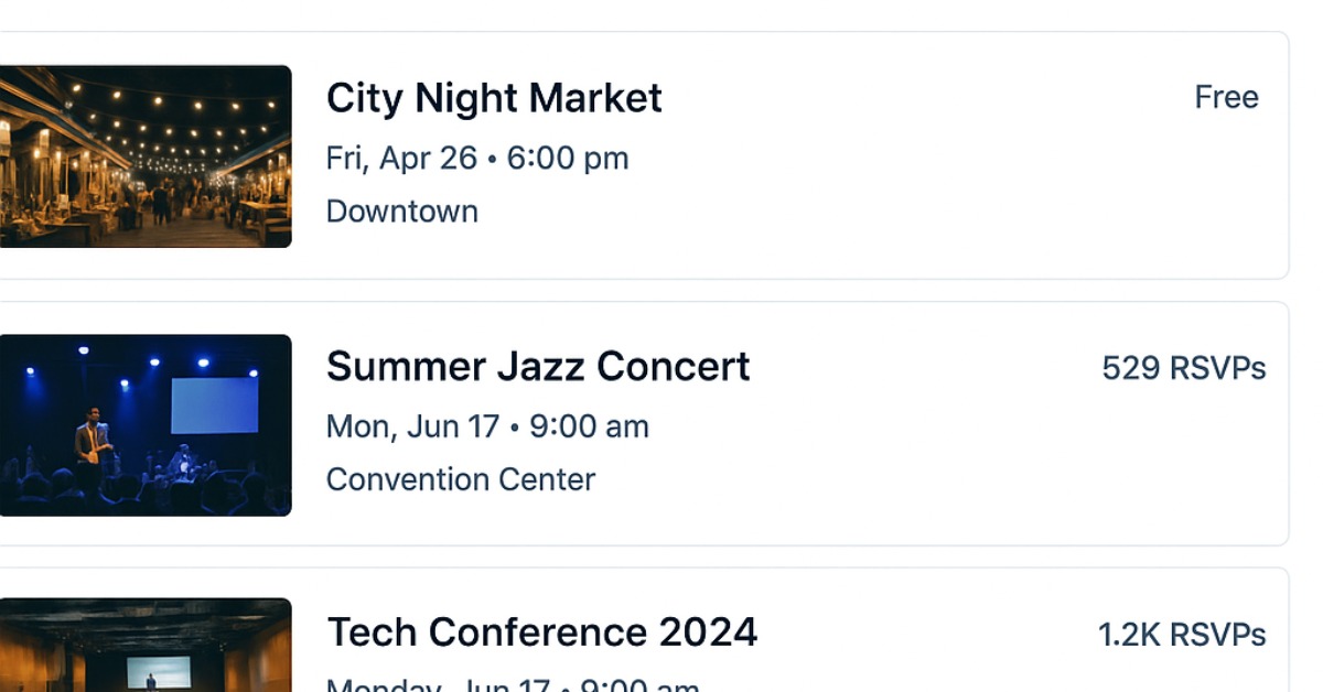 A clear events page with dates, locations, and prices up front. Buying a ticket takes seconds with Apple Pay/Google Pay where available. Confirmation lands in their inbox with a QR code and calendar add-to links. If plans change, they can view their order and follow your rules for transfers or refunds.